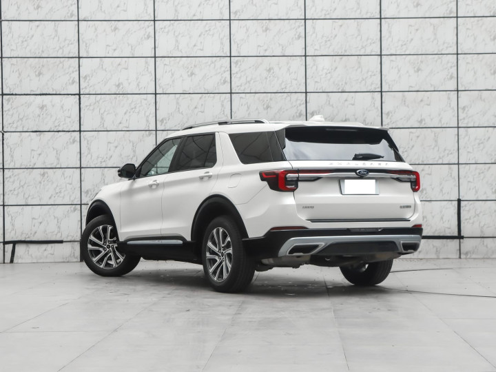再来看车尾部分,新车对扣C型尾灯通过3D立体灯带实现高辨识度,福特探险者四驱穿越版后尾门中央带有“EXPLORER”英文车型标识,尾门左侧“4WD”标识体现四驱身份。双边共四出排气装饰件与底部银色护板形成层次感。电吸尾门支持高度记忆功能,但外挂备胎设计在顶配车型上缺席。尾门铰链采用双液压支撑,开启过程噪音控制优于同级竞品。