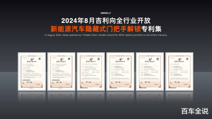 在新能源安全领域,吉利雷霆电驱、神盾金砖电池、车云一体AI BMS等技术均融合AI底层能力,神盾金砖电池更成功通过8针同刺、真弹贯穿、行业首个“整车+整包”带电六大串行试验等多项远超国标的“极限测试”,树立行业安全新标杆。公域安全方面,吉利已参与115项安全技术标准的制定,在全球范围内的权威安全评测中,已经获得超过70个最高安全评级,并向全行业开放共享电池底部安全、门把手安全等专利集及一键破窗技术,推动行业安全标准升级。此外,吉利在健康安全、防盗安全和数字安全等领域均储备数十种新技术。