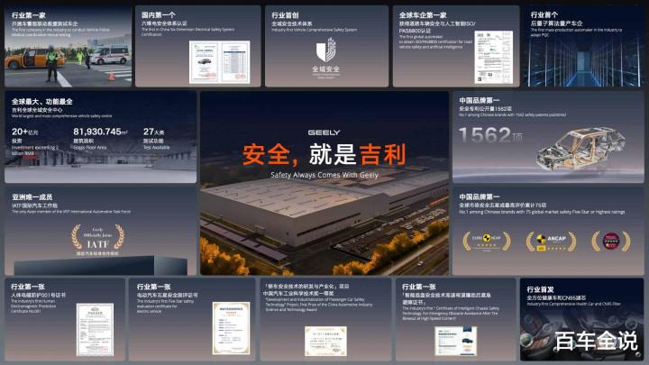 “安全”始终是吉利造车的第一优先级。深耕造车领域近30年,吉利秉承“用户至上、安全第一”的造车核心价值观,以长期主义沉淀技术实力,铸就了名副其实的“安全世家”。